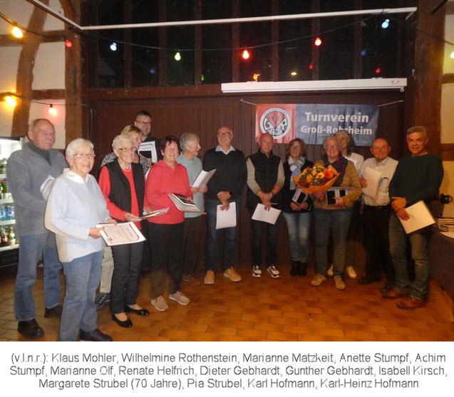 Am Samstag dem 05.12.2022 fanden die Ehrungen des Turnverein Groß-Rohrheim statt. Gemeinsam mit den diesjährigen Maimarkthelfern konnten alle in der bekannten Scheier-Athmosphäre einen kurzweiligen Abend bei Flammkuchen, Pizza und Getränken genießen. Viele der Anwesenden fanden sich auf der laufen Bildershow wieder. Sei es beim Ortslauf, Maimarkt oder bei einem anderen Event der vergangenen Jahre. So wurde gemeinsame Erinnerungen ausgetauscht und auch über die Veränderungen der Vereinswelt nachgedacht. Wir hoffen es hat allen gefallen um vielleicht auch in Zukunft solche Aktivitäten anbieten zu können. Alle anwesenden Geehrten erhielten Urkunden und kleine Präsente.