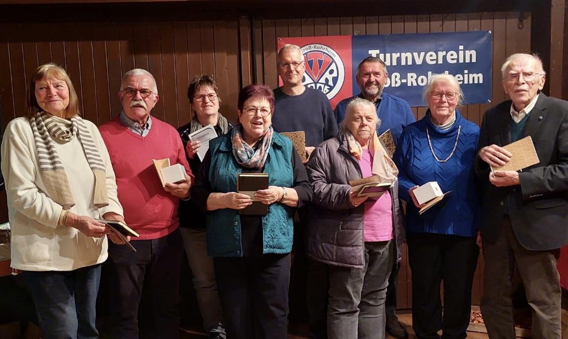 Ehrung 40 Jahre Mitgliedschaft von Links: Pia Strubel (1. Vorsitzende), Christa Petri, Friedrich Petri, Waltraud Olf, Heinz Krauß, Bernd Lorenz, Uwe Hofmann, Ekkehard Lautenbach, Waldemar Radmacher, Andreas Fries, Bärbel Lotter, Andrea Herbert, Jürgen Kirsch